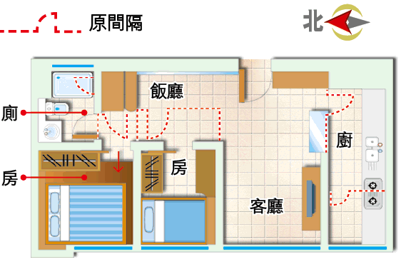 穗禾苑樓齡達30年,靚裝修單位不乏捧場客,如介紹的520方呎單位,業主花費約15萬元翻新,新鋪地磚,廚房重做,惟保留舊式冷氣及鋁窗。間隔方面亦有改動,睡房改細,廚房拆牆以開放式設計,但保留露台位不變。單位廳房向北,望山坡樓景,仰首可望藍天白雲,勝在環境清靜。由於此戶大門向南,若打開大門,南北通風效果佳。