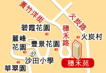 火炭穗禾苑座落半山地段穗禾路上,位置自成一隅,除個別面向馬路單位外,屋苑整體居住環境清幽簡單,對於追求寧靜居庭的用家別具吸引力。物業擁有居高臨下的地勢,開揚景觀是賣點之一,最優質當然是城門河遼闊遠景,即使外望山巒亦特別翠綠養眼。現時山景戶入場呎價可低至不足3000元,較河景戶最低消費每方呎3300元平至少一成,抱怨樓價過高不敢上車的用家,可作考慮。