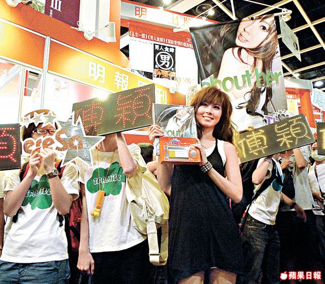 昨日書展正式開鑼,傅穎以首位在書展登場藝人的身份,響頭炮谷寫真《abouther》。昨日她在會展連踩四場,分別於早上10時及11時硬銷已簽名的寫真,兩站粉絲人數各近40人,而首站排頭位的女fans狂掃30本,頭100名書迷獲贈相機帶。