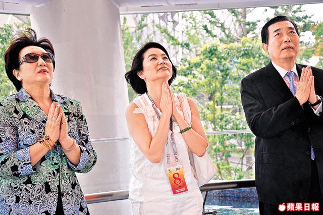 兩位金馬影后昨日一起造訪台灣館,引來不少遊客目光,台灣館的負責人王志剛為隆重其事,特地親自接待,並安排演奏青霞曾主演的《笑傲江湖Ⅱ東方不敗》系列的電影主題曲來迎接她。