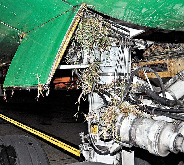 台灣真理大學航空運輸管理學系主任盧衍良表示,波音747-400客機左右兩邊主輪各有八個輪胎,因已在滑行道慢速前進,即使三個輪胎爆胎,也不致於衝出滑行道。