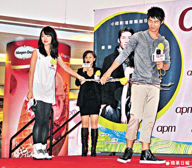 繼日前出席完釜山電影節後,周冬雨聯同男主角竇驍昨日首次來港宣傳新戲,到apm出席電影歌曲MV首播活動。現場見周冬雨打扮簡單清純,跟戲中角色沒有很大分別,十足鄰家小女孩,當她和竇驍在台上看MV時,周冬雨更一度感動至眼濕濕,真情流露。接着周冬雨和竇驍跟現場市民玩遊戲,吸引半百人圍觀,當中不少是自由行旅客,倍添親切感。