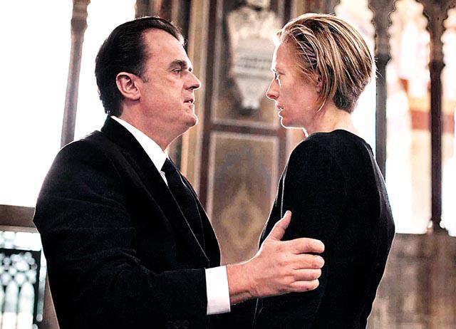 《私情狂》開始時那些現代貴族強力維護的吃飯儀式,如源自遠古頑固的祭禮,在餐桌上的禮儀,好像是為了接下來要揭示的內部腐朽,而鋪排的反諷。我從來覺得不管是德的維斯康堤,還是意大利的費里尼,或者安東尼奧尼,其實在描寫這些華麗衣服下包裹着的蒼白靈魂的同時,對這些過去的貴族豪奢意識十分迷戀,就像聽馬勒的音樂,很頹廢,又令人樂此不疲。為了TildaSwinton的乳房,我願意不斷重看《私情狂》。