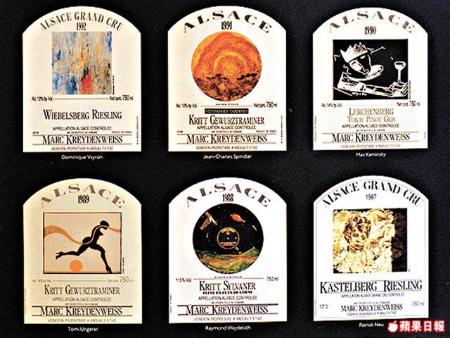 對於門外漢如我,比「GrandCru」或「Parker」更易讀的參考指標是瓶身的label,選一瓶酒標漂亮的,俾錢都爽手啲。MarcKreydenweiss深明此道,每年請來不同藝術家,率先品嚐佳釀,然後繪畫酒標。瓶身的「酒畫」都表達了當年的特性,如03年夏天極炎熱,酒標便以金黃火紅表達;今年?是一個骷髏身體加大魚頭,職員沒清楚解說,我們就在試酒室自己找答案。