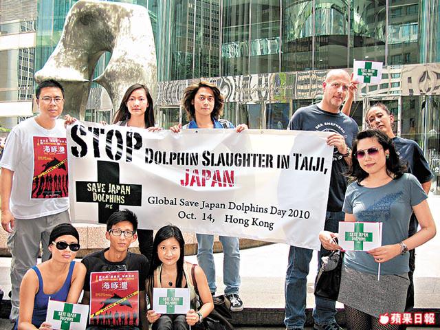 CNN有篇報道《50reasonswhyHongKongisNo.1》,指香港每日平均有2.7宗遊行,是世界之冠,遊行在這裏是家常便飯。昨日有50人到日本駐港領事館所在的中環交易廣場外請願,不是保衞釣魚台,發起人陳迪茵(Jess)受紀錄片《海豚灣》屠殺海豚的場面觸動,由一個「不問世事」的保險顧問,搖身一變成為保護海豚女神,帶頭要求日本政府正視太地町捕殺海豚問題,呼籲市民停止到以海洋為主題的公園及水族館,拯救為表演而被捕獵的海豚。