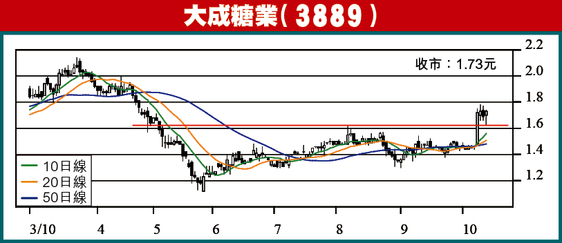 炒通脹的話,大成糖業必受捧,昨日升2.3%,收1.73元,在現位整固了幾日,係時候再爆。