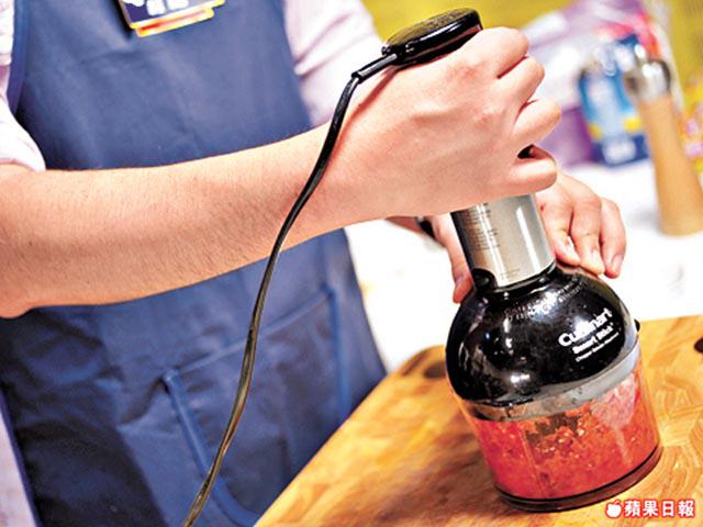 1.西紅椒去籽切粒,連同蒜瓣一起放進攪拌機內,加兩湯匙水打成漿,隔水,加入蜜糖拌勻。