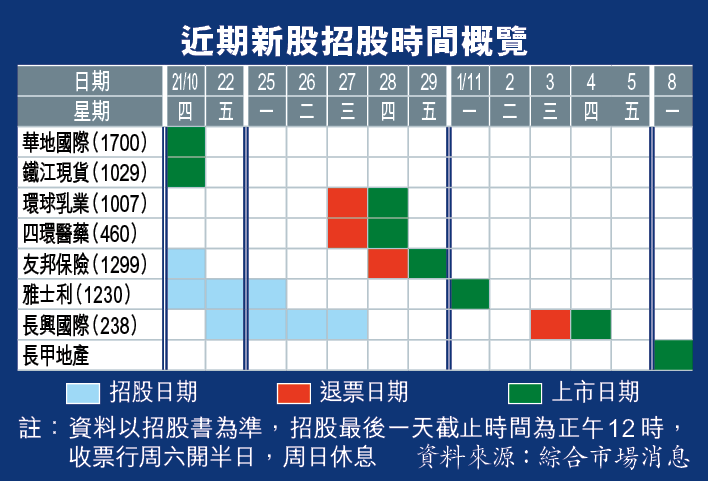 首日招股的雅士利(1230)則錄得約9000萬元孖展認購,未足額。市場消息亦指,昨截止認購的環球乳業(1007)公開發售超購逾10倍。