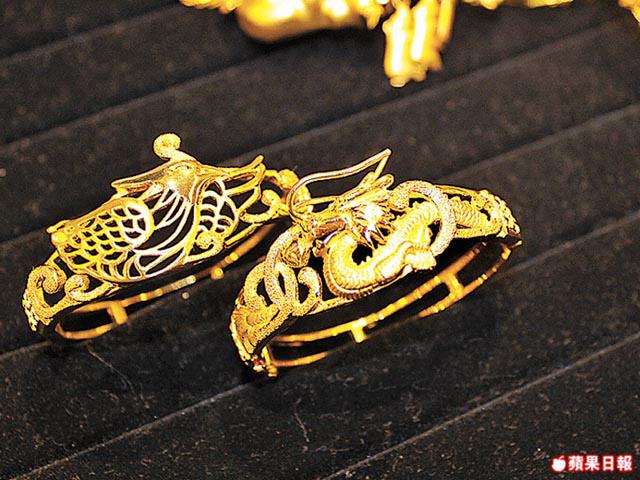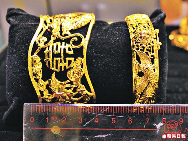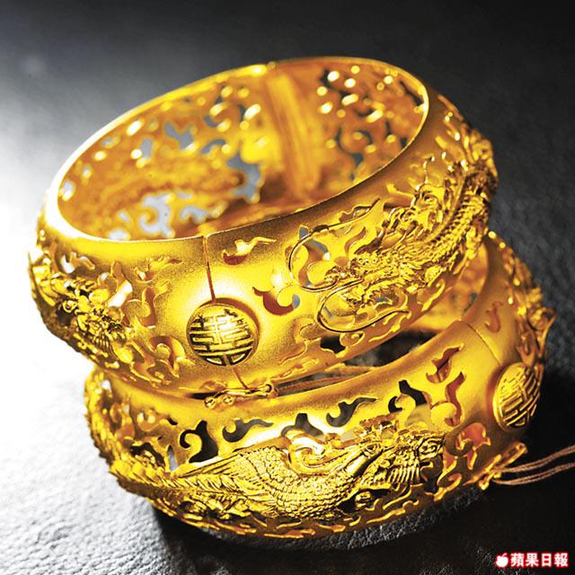 今日金價高企,黃金一両賣萬多元,打一對龍鳳鈪隨時要三四萬,如果還要選傳統的九龍鈪,又厚又多浮凸,價錢更貴。因此,通花的龍鳳鈪近年開始流行,80後的周生生技工阿龍說:「以前的龍鳳鈪多是批花和倒模做出來,很難做到通花的款式,但到了90年代就有電鑄技術,能做到通花的效果,更可做出各式各樣的立體金雕像。」步驟是先用膠模注入熱蠟,然後做出蠟龍鳳鈪。接着在蠟鈪上塗上一層銀讓鈪導電,便放它進電鑄的液體中。之後,一層薄金便形成在蠟面,經加熱後蠟溶掉便完成通花金鈪,最後要靠人手焊接鈪上凸出的花紋。「現在的打金飾技術多是七分機器,三分人手,人手的部份負責焊接配件、鑲石、打磨等。機器做出來的金器水準穩定,而且時間快可大量生產,不過太精細的部份還是需要人手。」