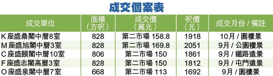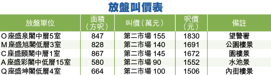 第二市場叫價153萬元 自由市場叫價240萬元 M座盛旭閣低層2室 建築面積828方呎