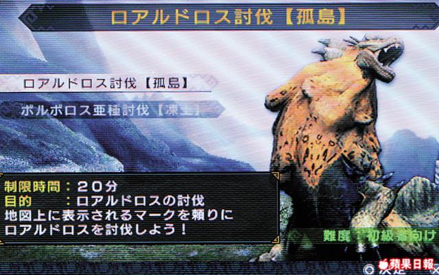 入到遊戲,會見到有體驗版嘅字樣,任務就只提供初級同上級,初級就係羅亞魯德羅斯,地點係孤島,而上級係亞種波爾波洛斯,場地係凍土,任務時間為20分鐘。我哋搵咗由第一集芒亨就開始玩嘅專家Michael試玩,佢就覺怪物嘅難度同以往分別不大,不過需要有唔同技巧,反而遇上獨行怪要注意,容易被佢難倒。