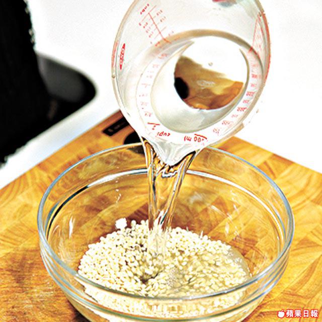 2.洋薏米浸半小時,洗淨隔水備用。