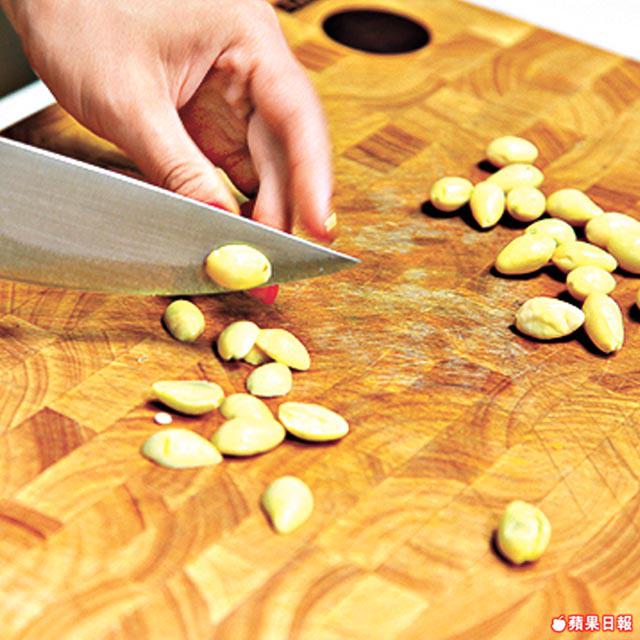 1.銀杏切半;南瓜切丁。
