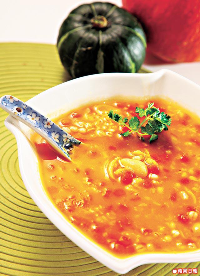 經常嚷着瘦身的女生,晚餐不妨吃得清淡簡單點,這個以薏仁、綠豆仁及南瓜來煲的粥,飽肚之餘又有豐富纖維,最重要是可以清腸胃兼美顏,一舉三得。