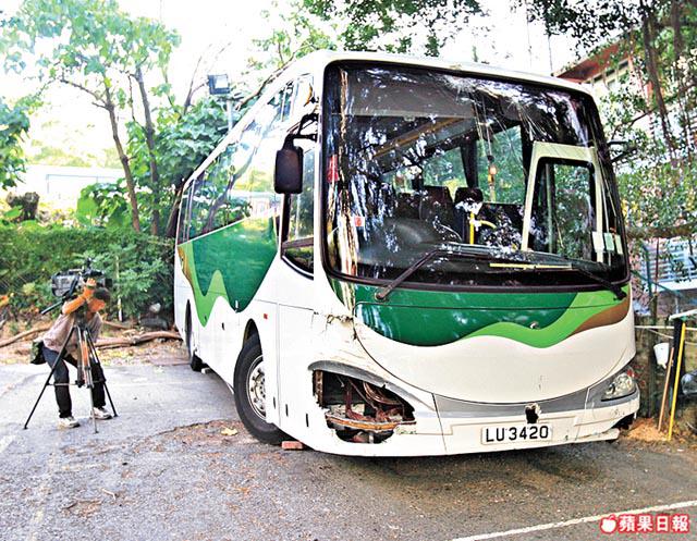 現場為華樂徑冠忠巴士停車場,除停泊該公司旅巴,亦提供時租車位予私家車及輕型貨車。昨晨7時半,姓周司機取車開工,啟動引擎「叉風」後落車例行檢查車身,豈料旅巴徐徐溜前。該處是斜路,旅巴向下溜20米猛撞由貨櫃改建成、約3米長、5米闊的更亭,以及旁邊的奧迪私家車。更亭連私家車壓爛背後幾棵樹和鐵絲網,直插三米下小巷,壓住兩部電單車。