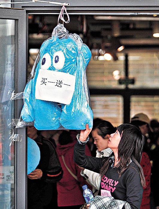 臨近閉幕,世博園區內不少特許商品店最後兩天大割價,不少商家推出「買一送一」大優惠,買一個海寶公仔可獲贈一件世博禮物;也有商家推出大派送,買滿一定額可獲贈福袋。而展館內同樣勁吹「減價風」,柬埔寨館內,一個刻有旅遊景點吳哥窟風景的銀製梳妝盒買一送一;緬甸館的天然翡翠50元促銷;泰國館的銷售區也推出兩折促銷;澳大利亞館、法國館、捷克館、波蘭館也紛紛推出紀念品促銷活動。