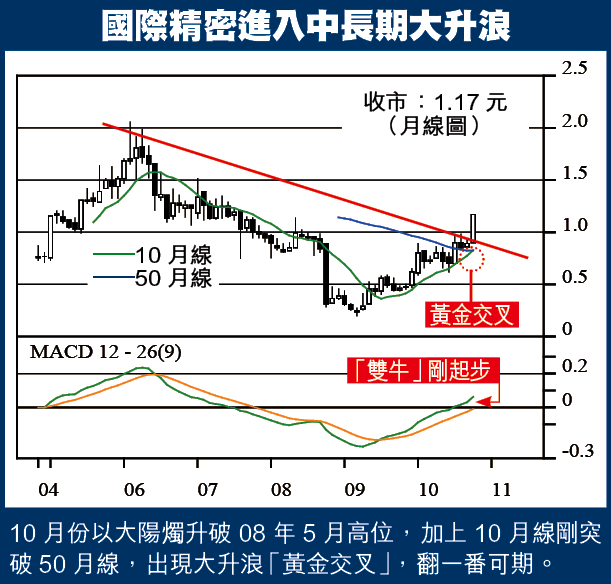 1)沙中尋寶,國際精密(929)有百分百條件選為「11月之星」,目標2.22元,幾乎翻一番。