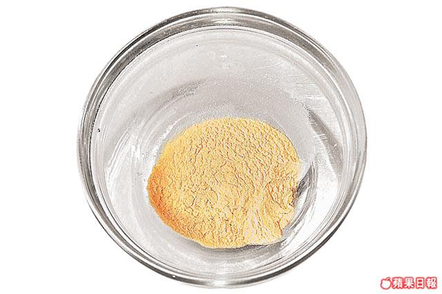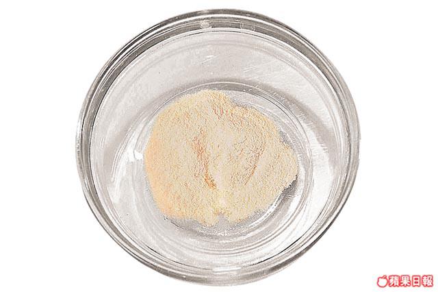 海藻酸鈉有凝固作用,跟鈣離子鹽水產生化學作用後,把果汁凝固成小珠,不過Charmine提醒要用較稀的無渣果汁才可得到最理想效果。