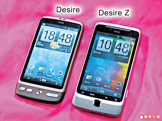 外形似得咁交關,又以Desire起朵,仲用埋Android系統,究竟呢部「新機」同第一代Desire有乜分別?DesireZ新追加一個QWERTY,機身中間有鉸位,只要做出揭起動作,鍵盤就會打橫趟出嚟,好特別!打E-mail或處理文書工作,固然拿手,但處理器速度佢只得800MHz,同上代Desire(1GHz)一比,數字上始終差些少,但試用仍好流暢,若打算拍埋720p高清片嘅話,呢部機就更加啱你。記者:陳國輝HTC(35201234)