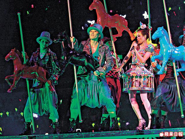 一連12場的容祖兒紅館演唱會前晚開鑼,以多個不同性感造型如喱士睡衣及低V中空look等登場,壓軸以一襲約值30萬元的潑水肩飾亮相,極盡視覺效果。祖兒又和男女舞蹈員扮演人肉三文治跳舞,又攬又錫,女舞蹈員更伸手入祖兒衫內撫摸,意識大膽。