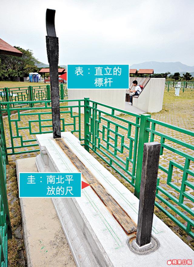 這個在書本都應該看過了吧!藉鐵棒所產生的日影來測出太陽的位置,以找出東南西北方位。
