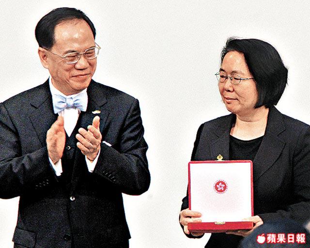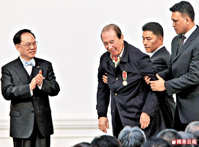 【本報訊】政府昨日舉行今年授勳儀式,患有腦退化症的「光纖之父」高錕,獨自步上台接受榮譽;去年跌倒受傷後長期住院的「賭王」何鴻燊,昨日不用坐輪椅,站起來接受大紫荊勳章。在青海玉樹地震中捨身救人的「阿福」黃福榮獲追頒金英勇勳章,其姊黃月秀昨代領時表情木然,其後更稱「攞呢個勳章,唔係開心嘅事」。