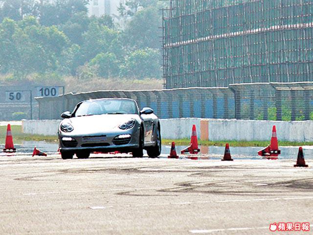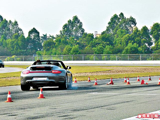 最後一項是Braking(制動),煞車都要學?當然唔係一般煞車,面前以雪糕筒為標記,開住有成385匹馬力,由0至100km/h只需4.7秒的911Carrera4S高速向前衝,到達雪糕筒時大腳急煞,咁仲未止,由於衝力不可以即時制動全車,前面的搖旗員及以旗號示意車手向左或向右停車,好多人踩到車輪出晒煙,完全感受到高速急煞的刺激感,不過絕對唔係官能刺激咁簡單,最緊要學埋一旦遇上意外急速煞車,都要注意衝力,反應要夠快。