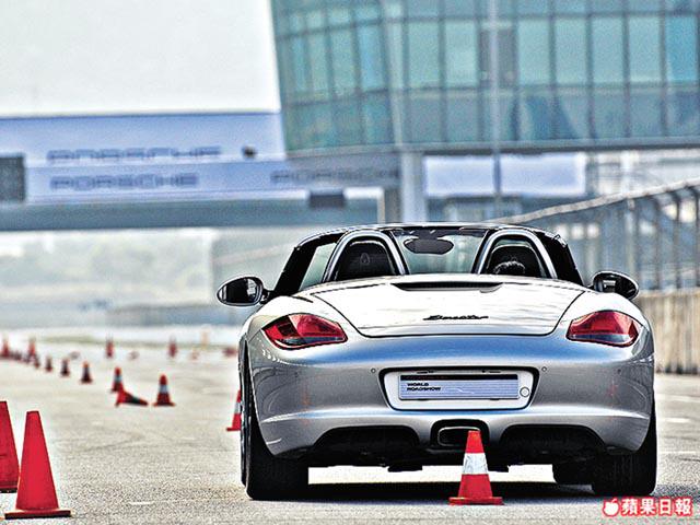 由「森林」返回賽車場,賽道訓練正式開始,首個是Slalom,Slalom係乜?繞障訓練是也,即係我們熟悉的扭雪糕筒。這個計分賽事就用上Boxster,成255匹馬力的Boxster出名操控靈活,啱晒玩Slalom,一直畀住油左右扭動,唔止靠快,仲要睇位要夠準,入彎角度越窄,當然可以走快兩步。