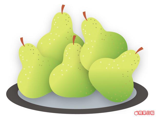 山田太太切水果給大家吃,五個梨子分給五人及家中小狗,共六口,梨子不能切碎,每個最多可切成三片,要怎樣切才能均勻分配?