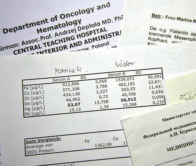 卡拉什尼科夫夫婦所中水銀毒的水平,對中樞神經系統構成嚴重威脅,病徵包括癲癇、喪失記憶力、語言能力受損、有幻覺和偏執妄想等。