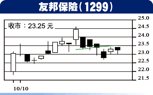 友邦保險(1299)保費收入主要來自亞太區15個地區市場,目前亞太區的保險滲透率及人均保費收入均偏低,加上受惠亞太區經濟增長,未來有相當增長潛力。雖然香港及新加坡的壽險市場已接近飽和,但公司擁有高企的市場佔有率,有助維持穩定保費收入。投資者可於22.75元附近買入,目標26元,跌破19.68元止蝕。