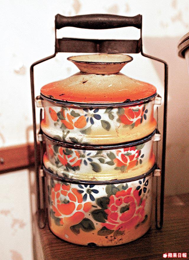 配備:銻製多層飯壺、餸籃及黑雨傘
