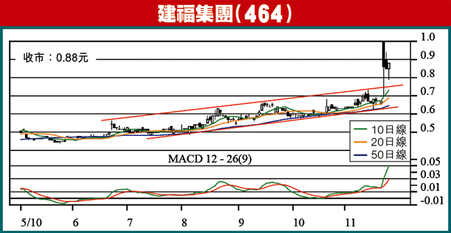 今日推介另一隻大落後股建福集團(464),雖然近日在宣佈中績前股價曾抽上去,但現水平仲係好偏低,短線有機會升超過5成,博得過。