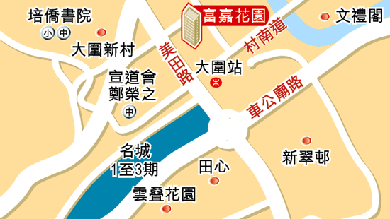 港鐵大圍站附近較多三房供應的居屋物業,是毗鄰車公廟路遊樂場的居屋雲叠花園,由6座物業組成,與富嘉花園一樣同屬私人參建居屋,樓齡同為21年,並以實用高見稱,設有小型商場。較為輸蝕的,是距離港鐵站較遠,步程約需10分鐘。