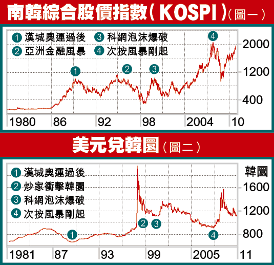 第三,從二圖可見,歷來韓股、韓圜的大轉角皆由外圍因素主導,軍事影響未見。