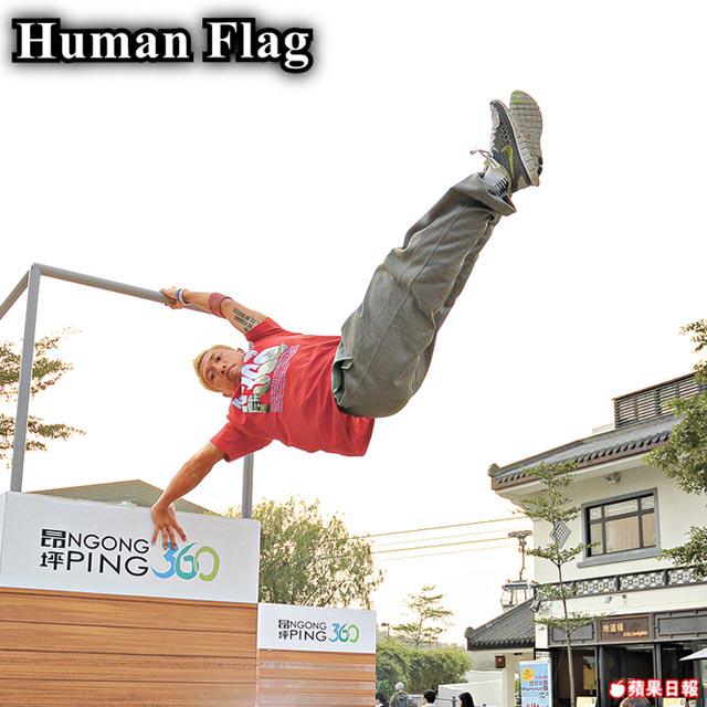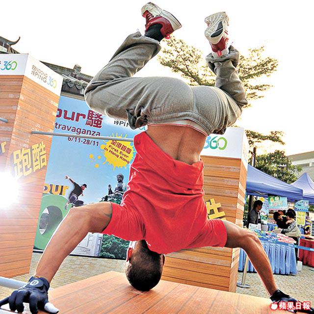 這本來是一個Breaking的靜止動作,今次表演也融在Parkour之中,由RaimundoQuerido示範。