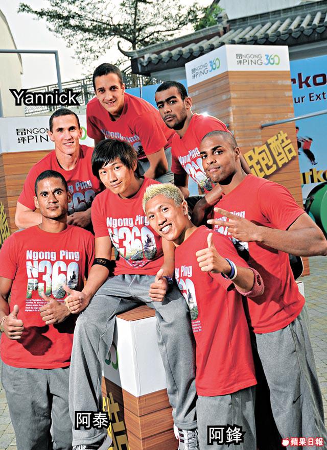 問Yannick記憶之中,做過甚麼危險瘋狂的動作,他答:「好多。其實有時我們在九龍公園玩,那些動作都十分瘋狂。」Yannick早幾年應邀來港,當時阿泰等一班香港年輕人風聞而至,請教他的Parkour技巧。Yannick也不吝嗇,免費指導他們。其中阿泰今年只有19歲,約四年前開始玩,「當時網上只有十多條影片,我們就Book室內練習場來玩,因為無咁易受傷。後來認識了Yannick,就一直練,現在我們『香港飛躍道協會』共有六個成員比較活躍。」他說最初人人都說輕功失傳,後來見識了真有人懂這門功夫,十分着迷,「原來真係做得到!」他隨幾名法國人表演,三扒兩撥就彈到屋頂,「Yannick指導了我們一些動作,有時大家在公園玩。但偶然會遇到保安,他們很緊張,大叫:你落返來啦!試過有人報警,但警察來了也沒有怎樣,因為我們沒有犯法。」Yannick表示,在英法兩地由於玩的人太多,當地政府已明白了此文化:「法國差人都很明白Parkour,不會對我們怎樣,只要我們沒有侵入私人地方就好了。但在香港,大家還未明白嘛,其實香港的公園很適合玩Parkour!」父母可有擔心?「沒有。我自小就好動,所以他們才把我送去學體操!反而我從物流轉去做電影特技,他們才擔心,純粹因為怕我賺不了錢過活!哈哈!」留在香港發展,生活如何?他用手勢表示:「在法國,感覺工作時低時高;但在香港,我知道可以建立自己的事業。」