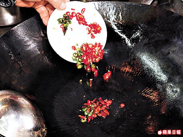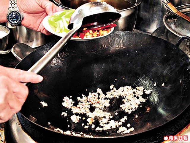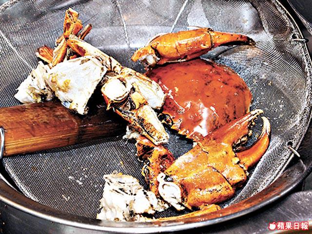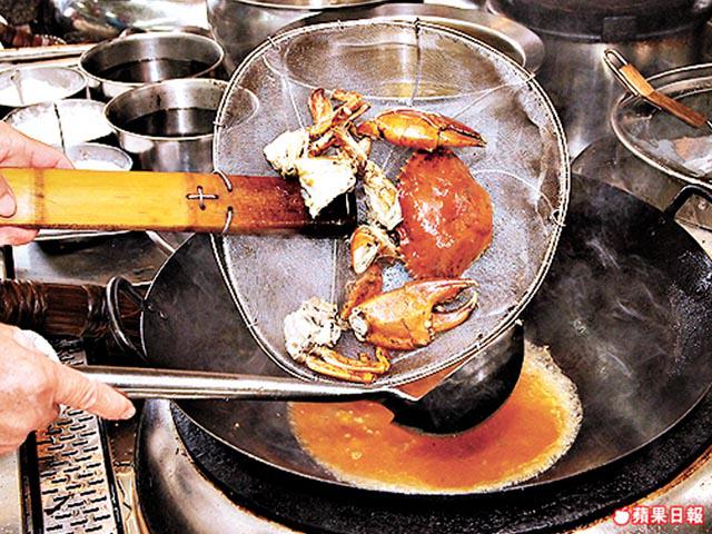 蟹蓋比蟹腳易熟,蟹腳要先炒,再以滾油淋熟蟹蓋即可。