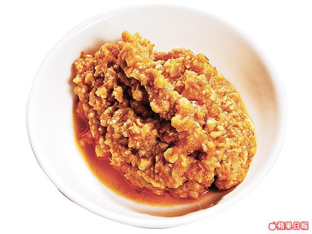 以黃豆渣發酵、釀造、調味再曬乾而成,味道鹹香酥脆,多配肉及魚,近年則加入豆豉做成調味料。