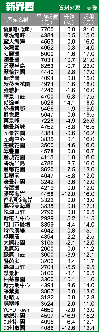 統計日期15/11-21/11(升跌幅為與前周比較)