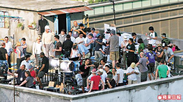 憑諧趣劇《戇豆先生》(Mr.Bean)紅遍全球的英國喜劇演員路雲艾堅遜(RowanAtkinson),昨日在尖沙嘴重慶大廈天台拍攝新片《特務戇J》續集,現場除有近半百工作人員開工外,更出動吊臂車拍攝,認真大陣仗。
