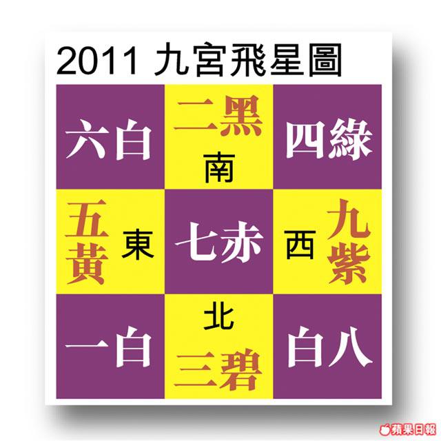 按九宮飛星所示,各方位代表不同方面的好壞。南面的二黑及東面的五黃位,均代表病毒星,屬土。而燈屬火,若在二黑五黃位置安裝燈飾,會催旺病毒殺傷力,令居住者身體出現毛病。若在二黑位置安裝五個燈膽;五黃位置安裝兩個燈膽更會構成二五交加,影響一屋人健康。
