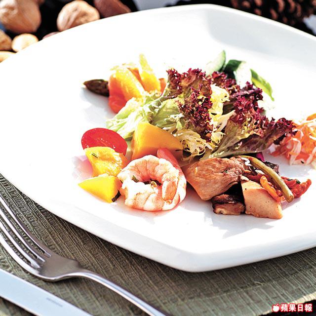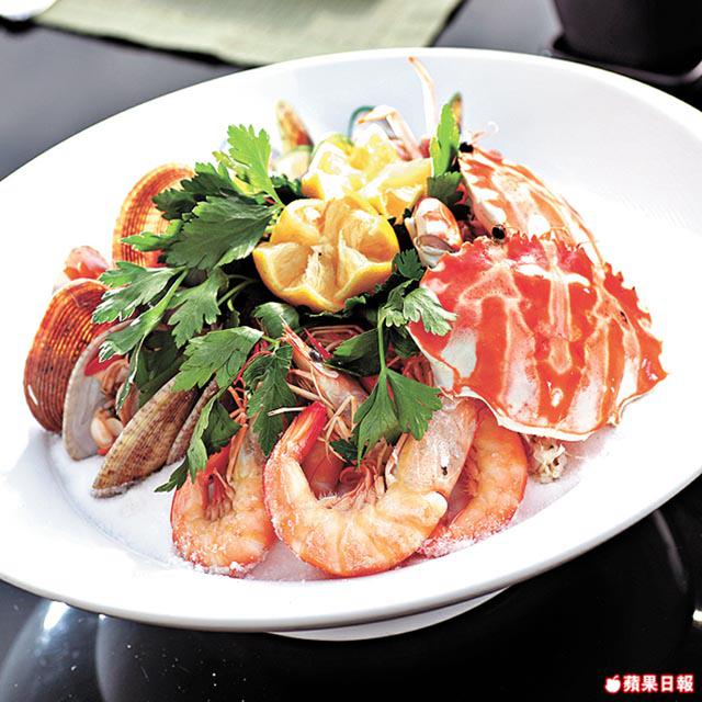 單食肉類很油膩,酒吧還設有冷盤和沙律區,開胃沙律有超過十二款,芒果和蝦是沙律最佳配搭,只用橄欖油和鹽略煮蝦肉,再混合芒果便成。煙三文魚露笋沙律,整條三文魚起肉切絲,露笋出水切幼,用橄欖油撈勻,很開胃。酒吧還特別提供酸菜任食客自撈沙律,梁國雄師傅:「BBQ吃肉多很油膩,酸菜冲過水加醋和糖,撈沙律吃可減輕肥膩感。」冷盤方面,花蟹做法和潮州凍蟹相似,新鮮生猛的花蟹雪至僵硬,入口冰凉有鮮味,海中蝦則是西式做法,用香葉、胡椒和白酒去烚,以保持爽脆,花蛤則用慢火浸到慢慢打開殼,還有新西蘭青口,中正我等愛吃海鮮的人胃口。