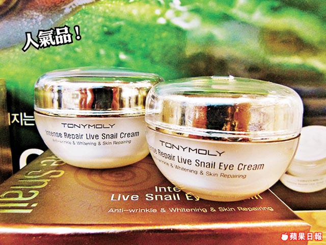 TonyMoly在明洞有好多分店,裏面有好多國語sales。買了盒IntenseRepairLiveSnailCream同磨砂嘴嘴,姐姐取sample的手勢是「練滿手掌」式的拿了十幾個toner同Gene-ScienceEssence,我面皮厚﹕「有無嘢香港無o架?」「我哋都唔係剩番好多……」然後就塞了一叠五份LiveSnailAntiAgingCream入袋,內疚……