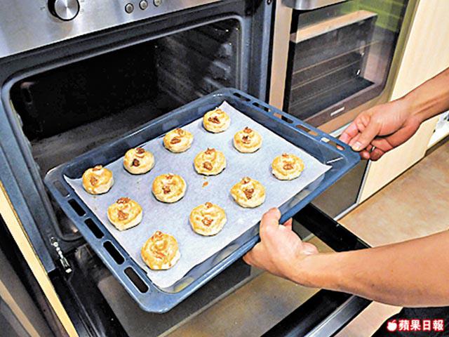 焗合桃酥時,見它稍上色後,便要調細溫度,以較長時間烘焗,可使其更甘香鬆脆。