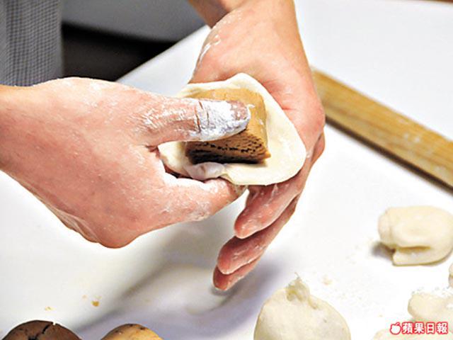熱辣辣的燒餅外脆內軟,咬下好煙韌,Edmund今次做的燒餅是用上紅豆茸,大家也可因應自己口味改用奶黃或栗子茸做餡料也可。