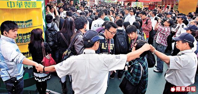 署理行政長官唐英年噚日到訪工展會造勢,排場認真唔講得小,大會安排專人舉起「嘉賓巡館」嘅牌開路,兩旁有十幾個張龍、趙虎、王朝同馬漢咁硬淨嘅保安築起人鏈,再加好打過展昭嘅G4人員傍實,如果加多個公孫先生,真係十足十包公出巡。