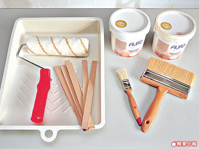 翻新家中牆壁另一個問題是油漆味久久不散。所謂天拿水味,其實是「揮發性有機化合物(VOC)」,並已證實是致癌物質。家有小朋友的,更應揀選成份天然的油漆。來自德國的AURO在歐洲已流行多時。拍攝當日我們與油共對2小時未有「上腦」感覺,反而聞到陣陣橙香,皆因油漆是用植物和泥土礦物製造。雖然市面上很多品牌都有推出「淨味環保漆」,天拿水味減弱了,但成份仍離不開石油。天然油漆可用清水稀釋,避過松節油之類的溶劑,更重要的是植物成份不會影響人類的神經系統。不過價錢則較昂貴,一般5公升淨味油漆約售$450,AURO就要$700。與乳膠漆不同,AURO環保漆上牆後不會形成膠膜,而是與灰水合而為一,所以不會有甩皮、爆裂的情況。而且透氣度高,可防止發霉,適合香港惱人的天氣。