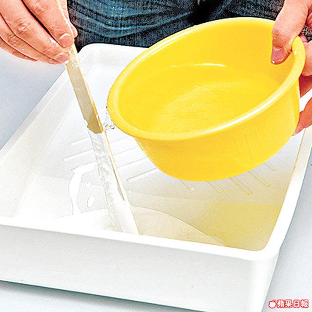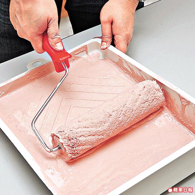 是次使用的是水溶性環保油,沒有令人high爆的天拿水味。倒油前先把油漆攪勻,以免顏色沉澱。再加入20-30%的水份稀釋。油漆不宜太稀,不然難以上牆。