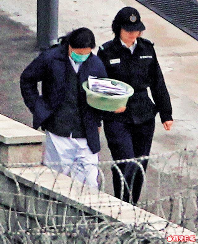昨晨7時55分,寒冷天氣警告下,屯門大欖僅得9℃低溫,戴口罩的Amina穿上白衫白褲及藍色外套,拿着裝有文件的洗面盆,由懲教署人員陪同離開大欖懲教所醫院辦理出獄手續。當時數十名記者已分別在附近山頭拍攝及於懲教所門外恭候。